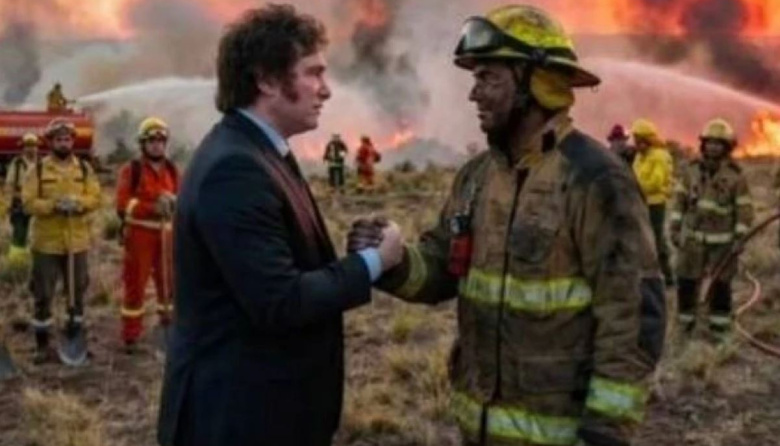 13/01 | Milei agradece a los bomberos de la Patagonia con una foto trucada, pero les redujo el presupuesto casi un 80 por ciento