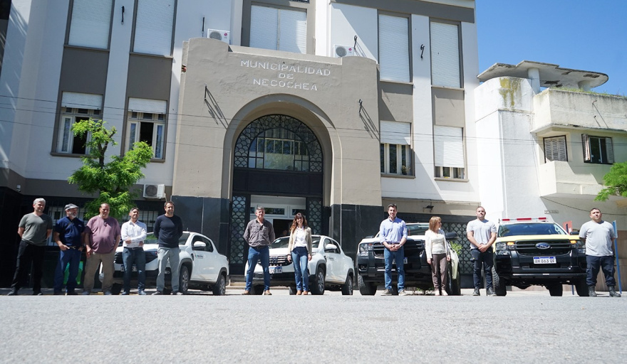 Con el intendente Arturo Rojas a la cabeza, se presentaron este viernes en la Municipalidad de Necochea los nuevos vehículos para Obras Sanitarias, EMSUR y Defensa Civil que se adquirieron a través de un nuevo crédito que permite la modalidad del leasing con Banco Provincia, tal como sucedió con la compra histórica del tomógrafo para el Hospital Municipal, y que responde al ordenamiento financiero que lleva adelante la actual gestión comunal.
