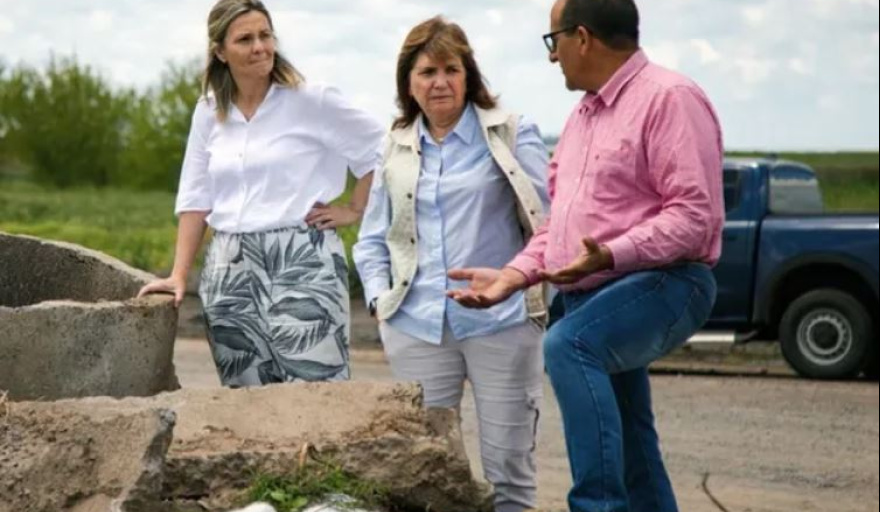 Tras reunirse con productores, Bullrich sostuvo: “Hemos hablado de temas de corto plazo, como arreglar los caminos, y problemas de mediano y largo plazo, que es la gran obra del Salado, que es lo que podría canalizar el agua” que se acumula en los campos de la región.