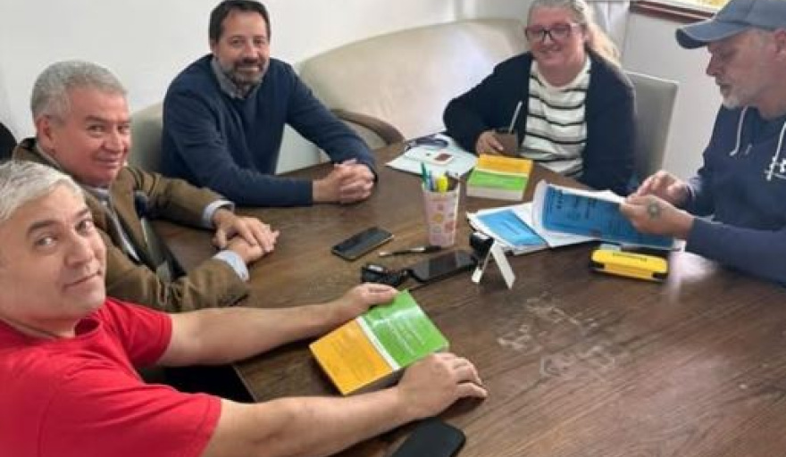 Los dirigentes sindicales Demian Ledesma y Alberto Peralta fueron recibidos por los concejales de Fuerza Patria: Julian Kristiansen, Silvia Blanco y Marcelo Rivero.