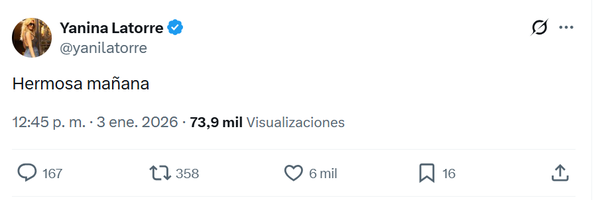 Yanina Latorre: La periodista, quien se ha manifestado en varias ocasiones a favor de la Libertad Avanza, escribió en su perfil de X: "Hermosa mañana".
