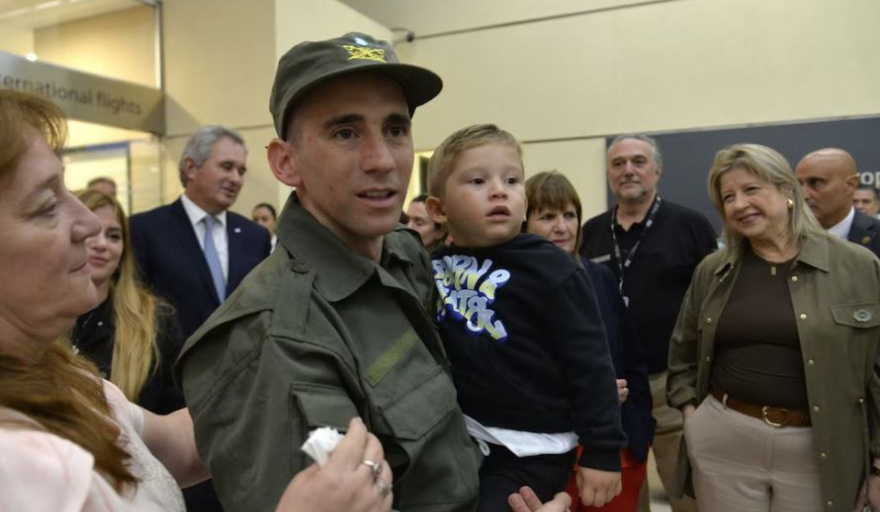 Así, el gendarme pudo fundirse en un fuerte abrazo con su hijo Víctor, de tres años, tras casi 450 días sin tener comunicación con él. Este medio pudo acceder a las imágenes de ese encuentro. Al pie del avión estuvieron su pareja, María Alexandra Gómez, y su madre, Griselda Heredia.