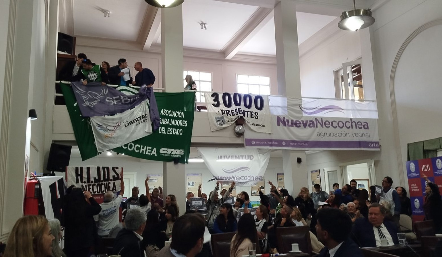 A partir de allí, el clima se tensó. Hubo cruces verbales y cánticos del colectivo de la memoria, que volvió a instalar una pregunta tan profunda como dolorosa: “¿Dónde están los desaparecidos?”. El recinto, que debería ser un espacio de debate democrático y respeto institucional, se transformó por momentos en un escenario de confrontación simbólica.