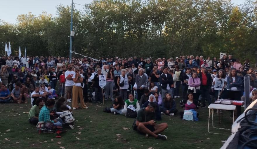 A continuación se leyó el documento del Colectivo de la memoria con criticas al Gobierno de Javier Milei y se realizó la foto simbólica con todos los pañuelos en lo alto.